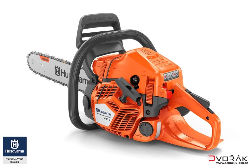 Řetězová pila Husqvarna 445S je zkonstruovaná tak, aby zvládla vše od lesnických prací, jako je kácení, řezání a odvětvování, po přípravu palivového dřeva. Tato lehká řetězová pila navazuje na spolehlivou řadu 400 a nabízí zesílenou, robustní konstrukci, která prodlužuje životnost výrobku. Je vybavená silným, optimalizovaným motorem X-Torq® o výkonu 2,2 kW pro vyšší výkon. Vyladěné startování dále vylepšuje funkce Smart Start®. Celkový dojem ještě zlepšují další prvky, jako jsou barevné značky směru kácení a pojistná matice vodicí lišty.
