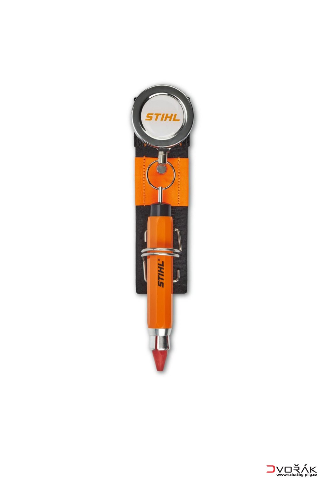 Držák na křídu STIHL ADVANCE X-Flex můžete připevnit k bedernímu pásu STIHL ADVANCE X-Flex nebo k opasku STIHL ADVANCE X-Flex pomocí robustních upevňovacích klipů STIHL.