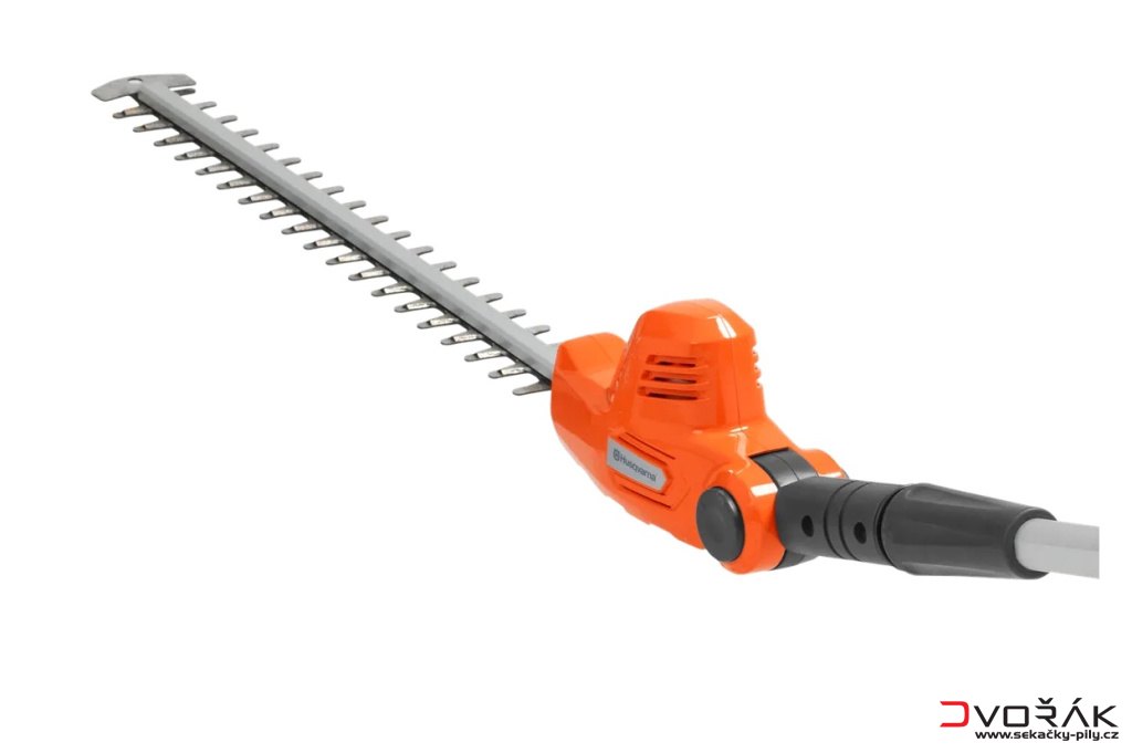 Nástavec s plotostřihem HK4 k akumulátorové vyvětvovací pila na tyči HUSQVARNA 120iTK4-P. Díky tomuto nástavci se z vyvětvovací pily stane univerzální nástroj, který lze použít jak na stříhání živého plotu, tak na řezání větví. Možnost nastavení 7 úhlů střihací lišty vám pomůže zaujmout pohodlnou polohu pro různé úkoly, jako je například stříhání těžko přístupných boků nebo živých plotů různých výšek. Díky teleskopické násadě získáte dosah až 4 metry.