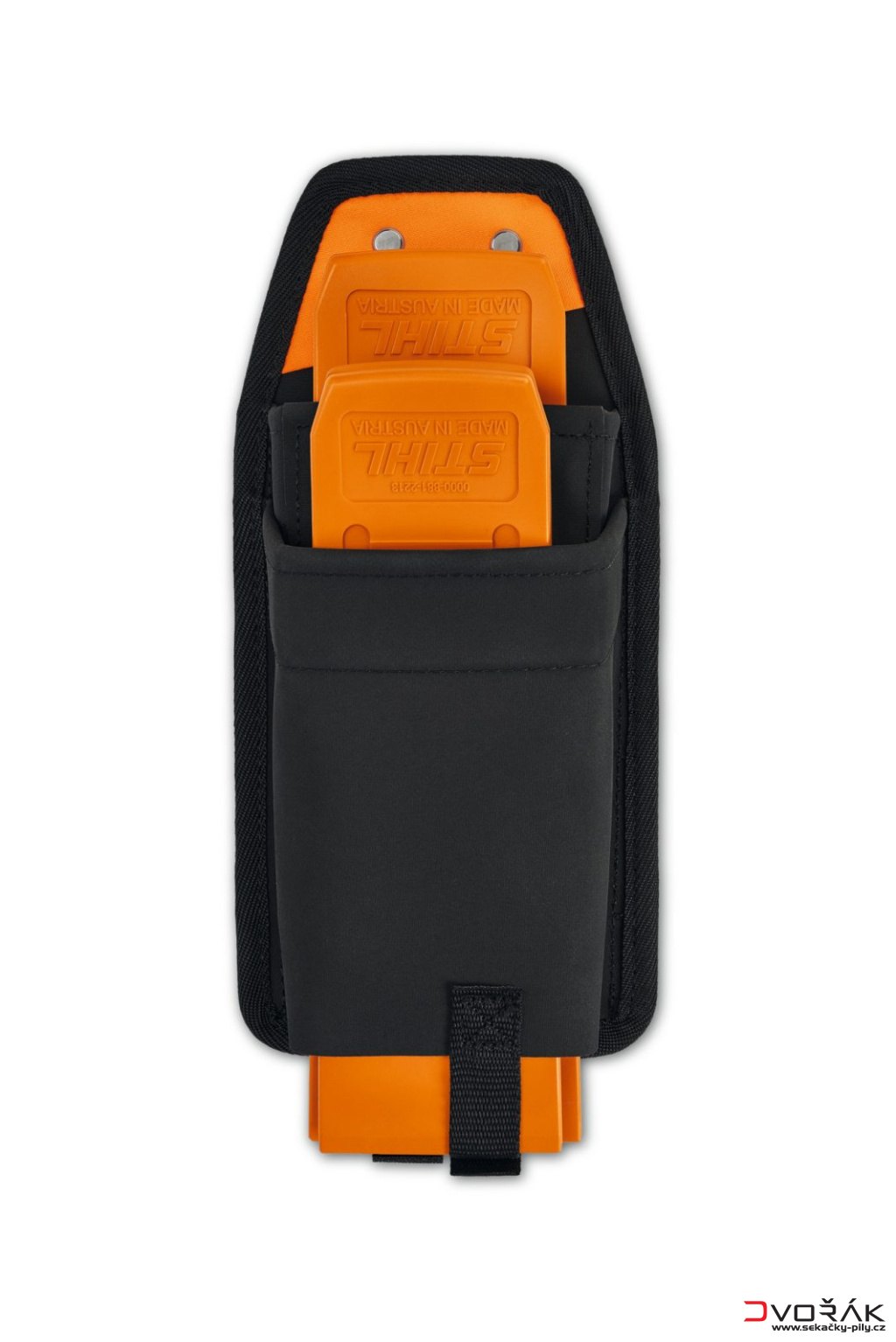 Pouzdro na štípací klíny STIHL ADVANCE X-Flex lze snadno připevnit k bedernímu pásu STIHL ADVANCE X-Flex nebo k opasku STIHL ADVANCE X-Flex pomocí robustních upevňovacích klipů STIHL. Černý pásek s háčky na popruzích nebo opasku k tomu nabízí dostatečný prostor, takže pouztdro můžete nosit i na krku v závislosti na vykonávané práci.