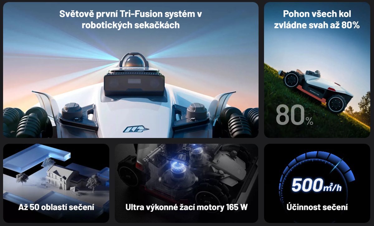 - Vylepšený čip umělé inteligence pro chytřejší a bezpečnější sečení