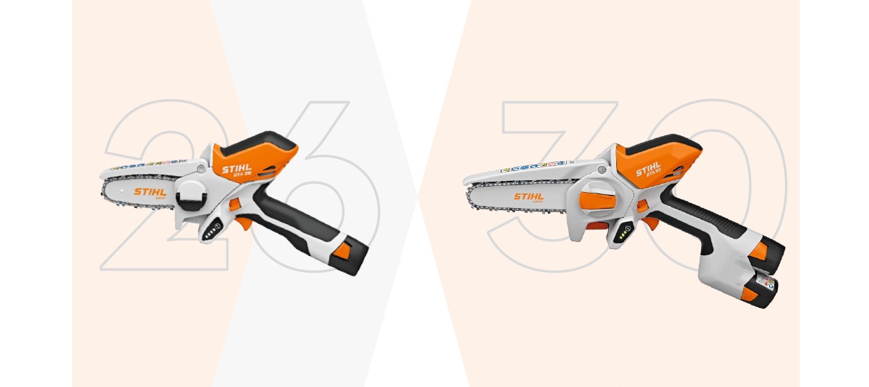 Zatímco oblíbená minipila STIHL GTA 26 je symbolem kompaktnosti, flexibility a snadné manipulace – ideální pro drobné prořezávání keřů, přípravu palivového dřeva menších průměrů nebo kreativní práce na zahradě – nový model STIHL GTA 30 posouvá hranice výkonu a komfortu při práci.